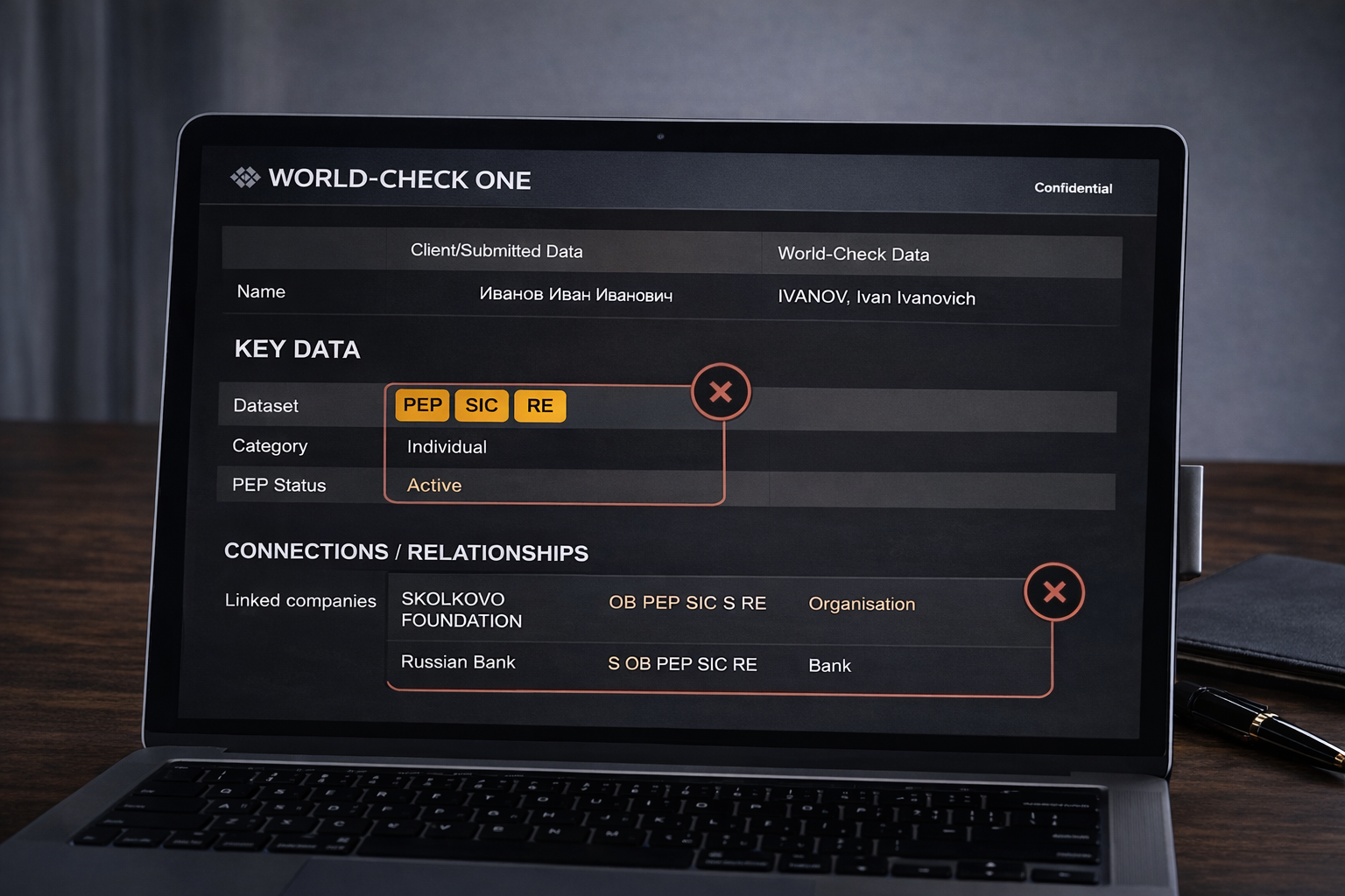 Собрав документы, комплаенс-офицер обращается к международным базам данных — World-Check (LSEG), Dow Jones Risk & Compliance и LexisNexis. Это глобальные системы с миллионами записей о физических и юридических лицах.
